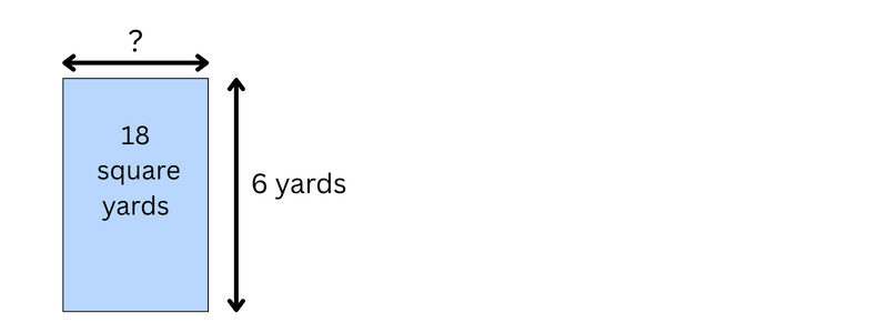 The width of the rectangle is 6 yards. The area is 18 square yards.