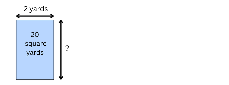 The length of the rectangle is 2 yards. The area is 20 square yards.