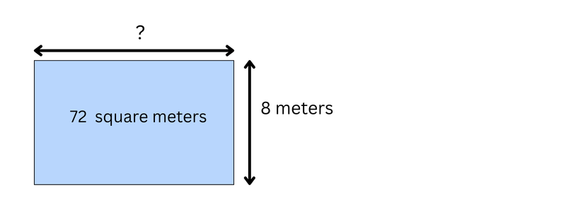 The width of the rectangle is 8 meters. The area is 72 square meters.