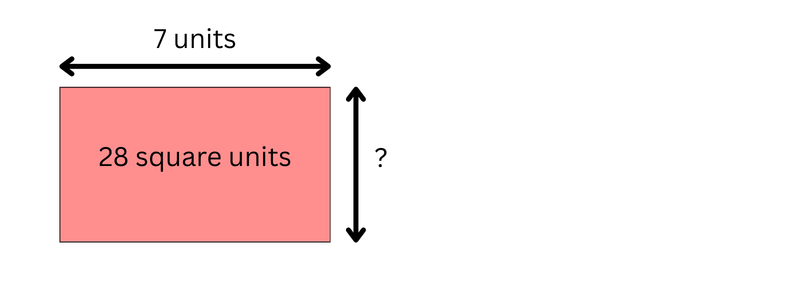 The length of the rectangle is 7 units. The area is 28 square units.