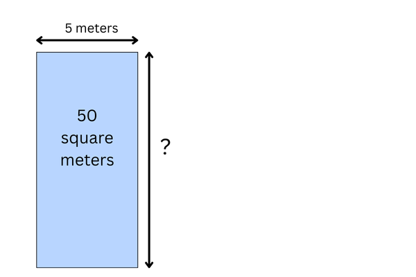 The length of the rectangle is 5 meters. The area is 50 square meters.