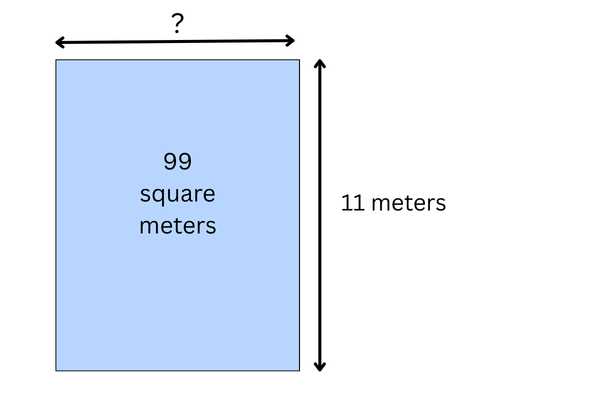 The width of the rectangle is 11 meters. The area is 99 square meters.