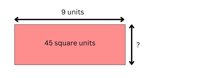 The length of the rectangle is 9 units. The area is 45 square units.
