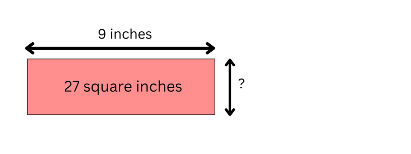 The length of the rectangle is 9 inches. The area is 27 square inches.