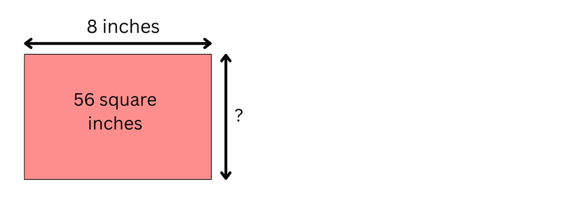 The length of the rectangle is 8 inches. The area is 56 square inches.