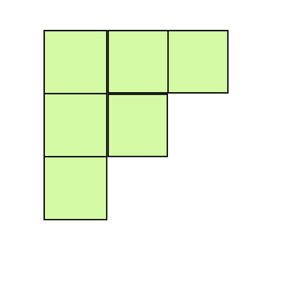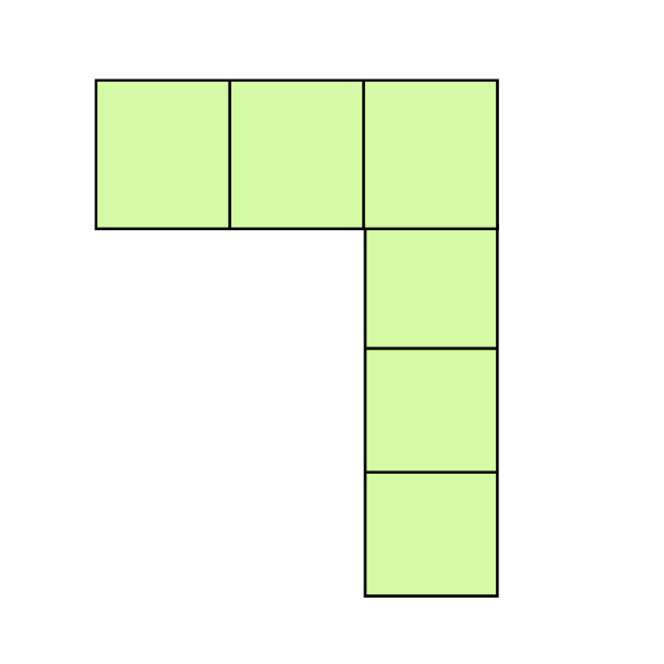 Count the unit squares in each shape. Which shape has an area of 6 square units?