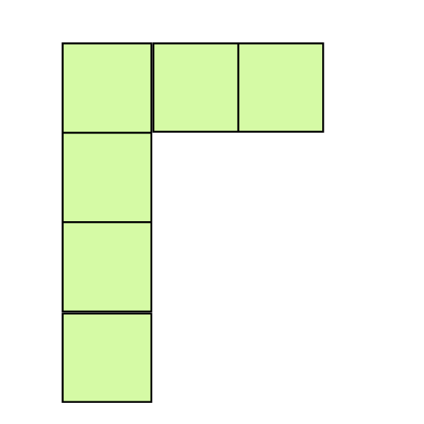 Count the unit squares in each shape. Which shape has an area of 5 square units?
