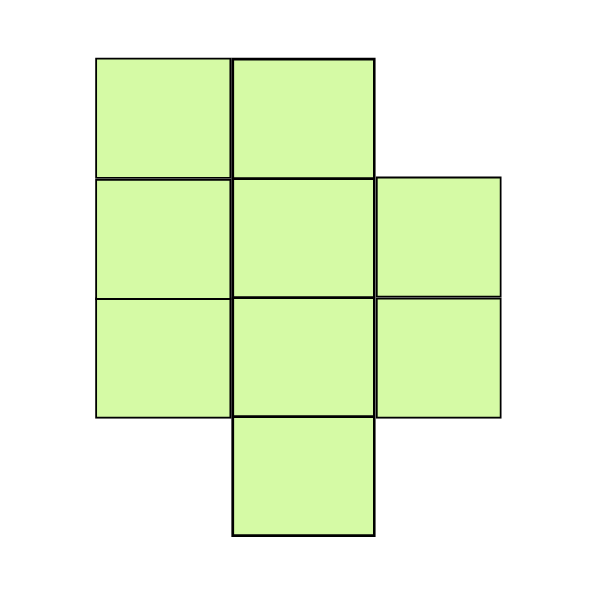 Count the unit squares in each shape. Which shape has an area of 9 square units?